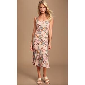 Lulus Island Sun Blush Pink Tropical Print Tie-Back Midi Dress Open Back Small