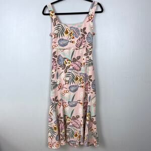 Lulus Island Sun Blush Pink Tropical Print Tie-Back Midi Dress Open Back Size Small