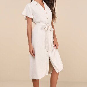 Lulus Italian Summer Beige Linen Midi Dress - Size M