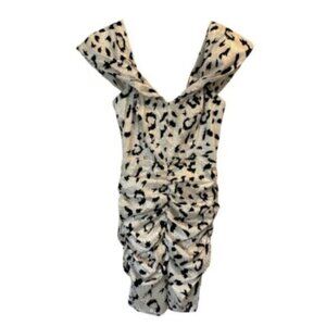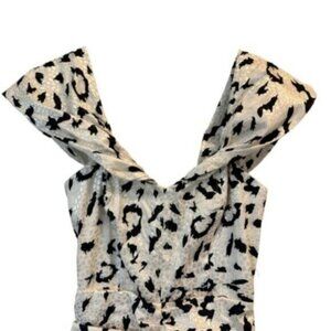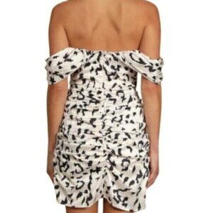 Lulu’s | It's Fierce Ivory Leopard Print Satin Off-the-Shoulder Dress Size Small
