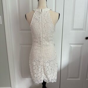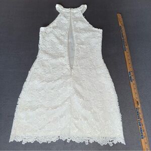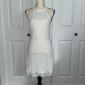 Lulu's Ivory Floral Lace Mini halter Dress lined size medium fits A-C cup best