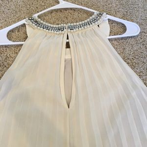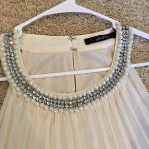Bought from the online store, Lulu's. Size small. Ivory/off white with jewels around the neck. Clips in the back. The top layer is sheer but there's an ivory slip attached to the inside. I'm 5'4" and it hits my mid thigh. Only been worn once.
