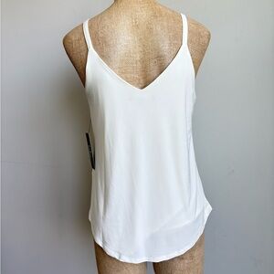 Silky soft stretch knit poly forms supportive spaghetti straps atop a classic triangle bodice with a plunging surplice front (with strap accent at the neckline,) that loops down into the relaxed bodice. A high-low hem and V-back top of this breezy look! Fully lined. Top measures 3.5" longer at back. 100% Polyester. Hand Wash Cold.