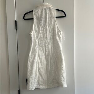 White sleeveless dress with button-up front and pockets. Perfect for a chic look.