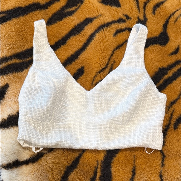 Elegant ivory crop top with a textured design. Features a flattering V-neckline.