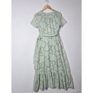 Lulu's Jacquard Short Sleeve Wrap Midi Dress S Blissfully Sage Green Ruffle