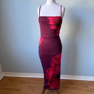 Lulus Jaela Burgundy Floral Mesh Sleeveless Bodycon Midi Dress