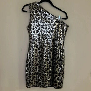 Lulus Jeanette Silver Leopard Print Sequin Dress size Large