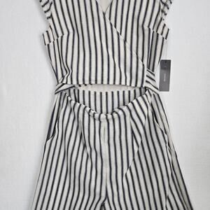 Lulu's Jetset To Go Wrap Culotte Jumpsuit sz M Blue White Stripe Nautical Vacation