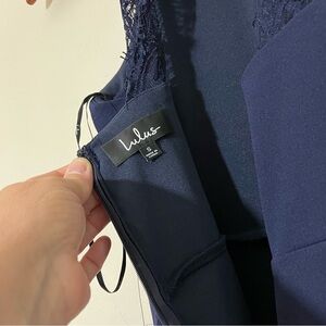 Lulus Joella Lace Halter Maxi Dress in Navy Blue Sz. Small NWT