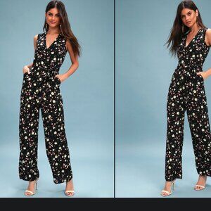 Lulus Jumpsuit Size Small Black Floral Print Wide-Leg Robertson Loose Chic NWT