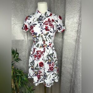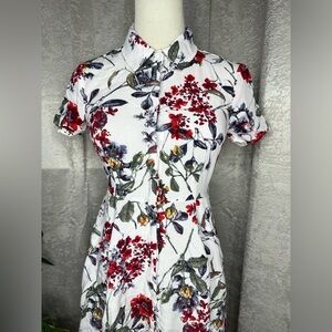 Lulus Just Fleur You White Floral Print Shirt Dress Sz XS