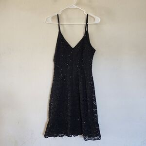 Just a Dream Black Lace Sequin Ruffled Sleeveless Mini Dress size medium