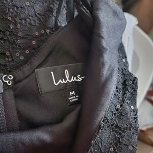 Lulus Just a Dream Black Lace Sequin Ruffled Sleeveless Mini Dress size medium