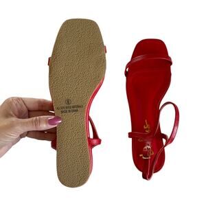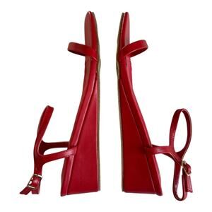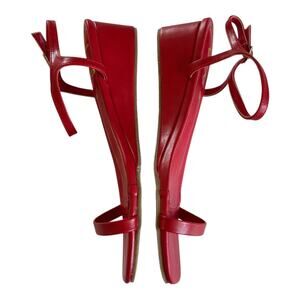 Lulus Karolina Red Faux Leather Ankle Strap Wedge Sandals Women’s Size 6 New