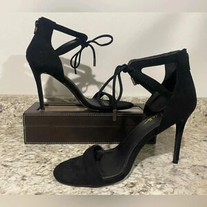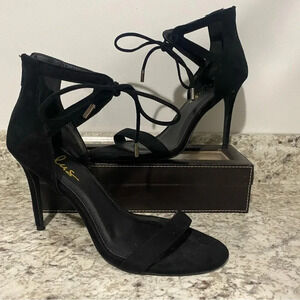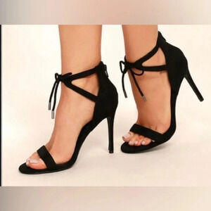 Lulu’s Kate Black Suede Ankle Strap High Heels Size 9