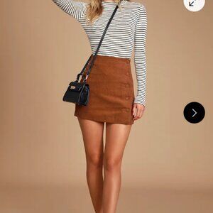 Lulus Katherina Rust Brown Button Front Corduroy Skirt - Size S