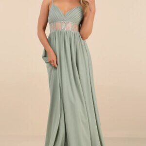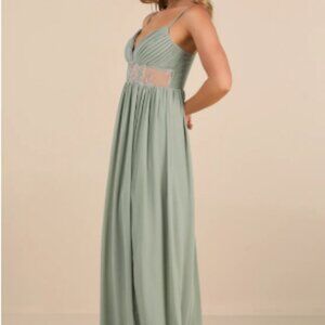 Lulu's "Kaylin" Wedding Guest Dress - Size Large - Sage Green - Maxi