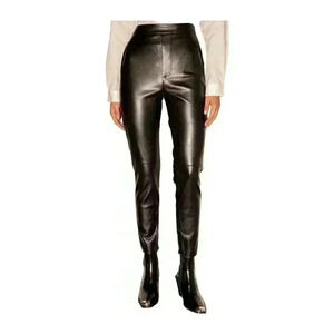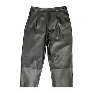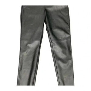Lulus Keep Your Stride Black Vegan Leather Trouser Leggings Ankle Length SIZE-M