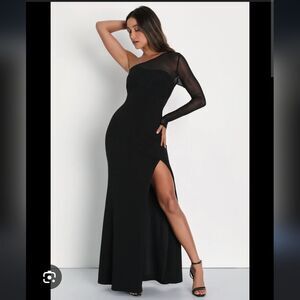 Lulus Keep it Interesting One Shoulder Maxi Dress in Black Size S