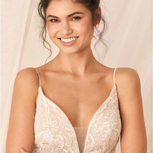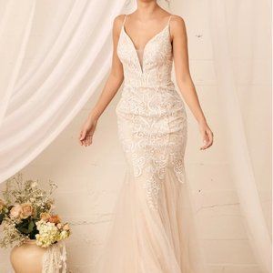 Pledge your love in the Lulus Luxe Keeping My Promise White Embroidered Lace Trumpet Maxi Dress! Lace-like embroidered mesh and dotted tulle layer together atop a light nude lining to form a plunging sweetheart neckline (with a sheer mesh center insert) and a princess-seamed bodice with padded cups and spaghetti straps. High waist tops a figure-skimming fit that flows to a maxi skirt with a trumpet silhouette and flaring godets for a grand finish! Hidden back zipper/clasp.