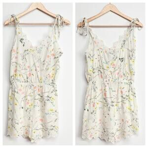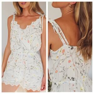 Lulus Keiko Ivory Floral Eyelet Tie-Strap Romper M