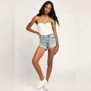 The Lulus Just What I Needed White Ribbed Keyhole Halter Crop Top is everything you could want and more! Stretchy ribbed knit fabric shapes a knotted, tying halter neckline above a keyhole cutout. The bodycon silhouette falls to a cropped hem. Pair with high-waisted bottoms for a totally trendy summer look!