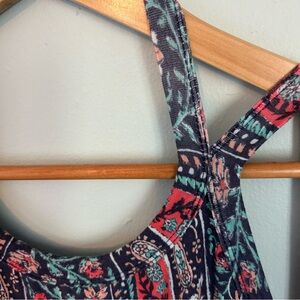 Hit the shops in casual style in the Lulus Kiss the Sky Navy Blue Print Midi Dress! Stretchy knit with a climbing floral and paisley-inspired pattern (in shades of coral red, peach, and mint) shapes this figure-hugging midi dress. Rounded halter neckline, open back, and slender straps complete the look.