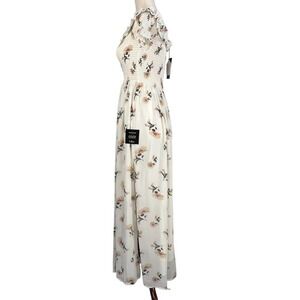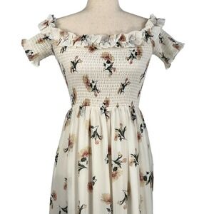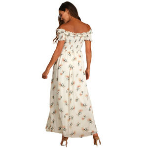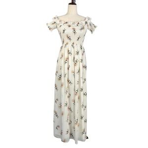 Lulus LET LOVE BLOOM IVORY FLORAL SMOCKED OFF SHOULDER BARDOT MAXI DRESS XS NWT