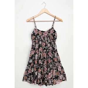 Lulus LUSH Flaunt Factor Black Floral Print Tiered Babydoll Dress