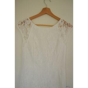 Lulus Lace Cap Sleeve Wedding Dress Crew Neck Scoop Back Size Medium