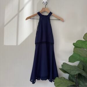 Lulus Lace Edge Cutout Waist Mini Dress Sleeveless High Neck Zip Up USA Made EUC