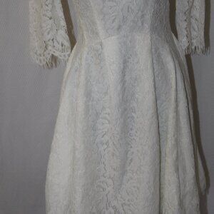 Lulus Lace Mini Dress WINTER WHITE 1/2 Sleeve Scalloped Hem Size S EUC SKATER