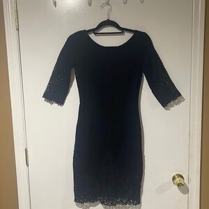 Lulus lace sheath dress with a crew neck and three-quarter sleeves. Knee length. Like new condition.