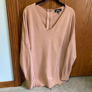 Lulus 'Laid Back' Mauve Women's Sweater Top Sz L ~ Zipper Back V-Neck Oversized