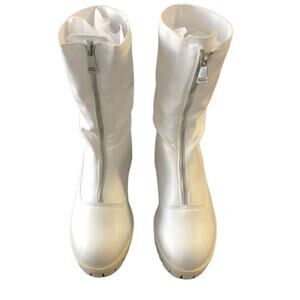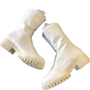 Lulu's Lakelynn White Faux Leather Zip Up Combat Mid Calf Boots New Size 7