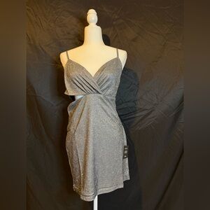 Lulus Large Shiny Silver Metallic Lurex Cutout Mini Dress