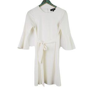 Lulu’s Last Love Song White Tie Waist Shift Dress w/ Bell Sleeves, Sz XS