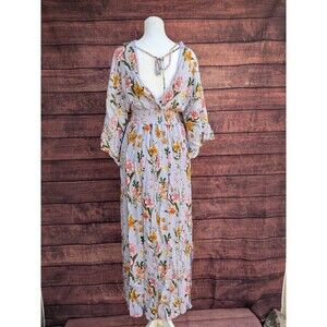 Lulus Lavender Deep v-Neck Split Flutter Sleeve Floral Dress Size Small