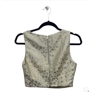 Lulu's Leopard Print Full Zipper Back Shimmer Cream Cropped Tank Size XS