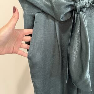 Lulus Let Me Entertain You Dark Green Satin Wide Leg Jumpsuit Size XL Christmas office Party