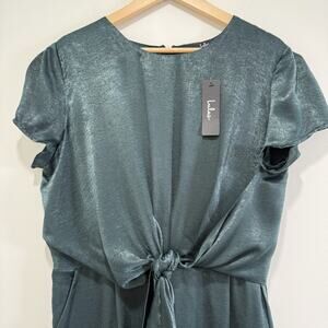 Lulus Let Me Entertain You Dark Green Satin Wide Leg Jumpsuit Size XL Party NWT