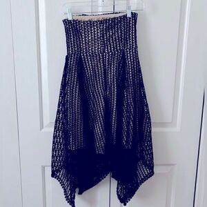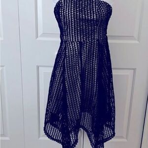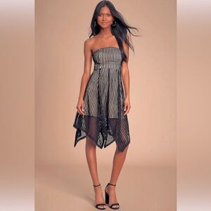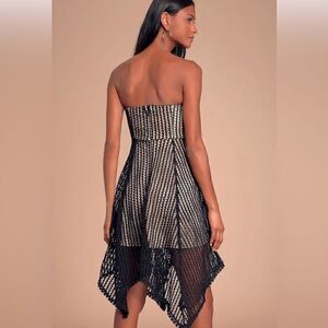 Lulus Leyana Black Crochet Lace Midi Dress Strapless Princess Seamed