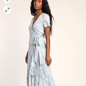 Lulu's Light Blue Jacquard Midi Wrap Dress