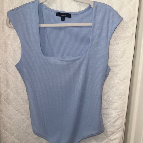 Lulu's Light Blue Ribbed Bodysuit