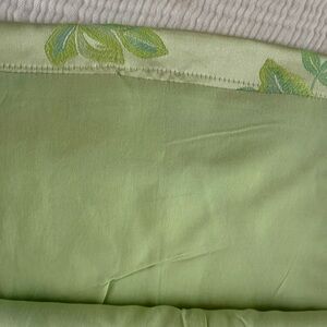 Fun Flirty special occasion dress with floral design. Light green fabric with floral accents. Ideal for semi formal occasions. Dress is lined