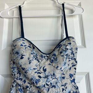 Elegant blue and grey (almost white) floral dress perfect for any occasion. Features a flattering fit and stylish design.