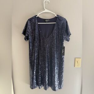 Lulus Light Up The Night Navy Blue Sequin Shift Dress Women’s SZ M Mini New