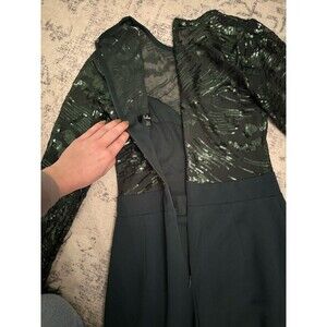 Lulus Limitless Radiance Green Sequin Feather Long Sleeve Jumpsuit Size XS Glam