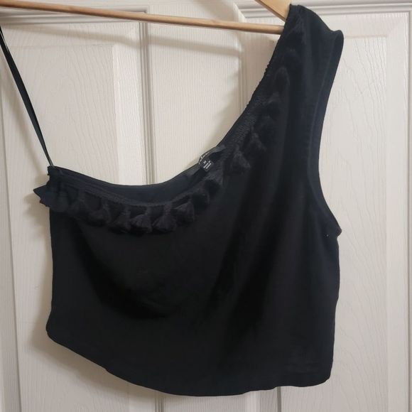 Lulu's Line In The Sand One-Shoulder Tassell Crop